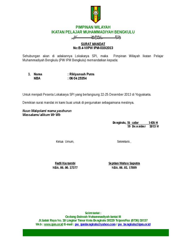 Text of contoh surat mandat. Download contoh surat mandat ipnu. Wallahul muwafiq ilaa aqwamith thooriq. If the download doesn't start, click here. Demikian surat mandat ini dibuat untuk dapat diguna.